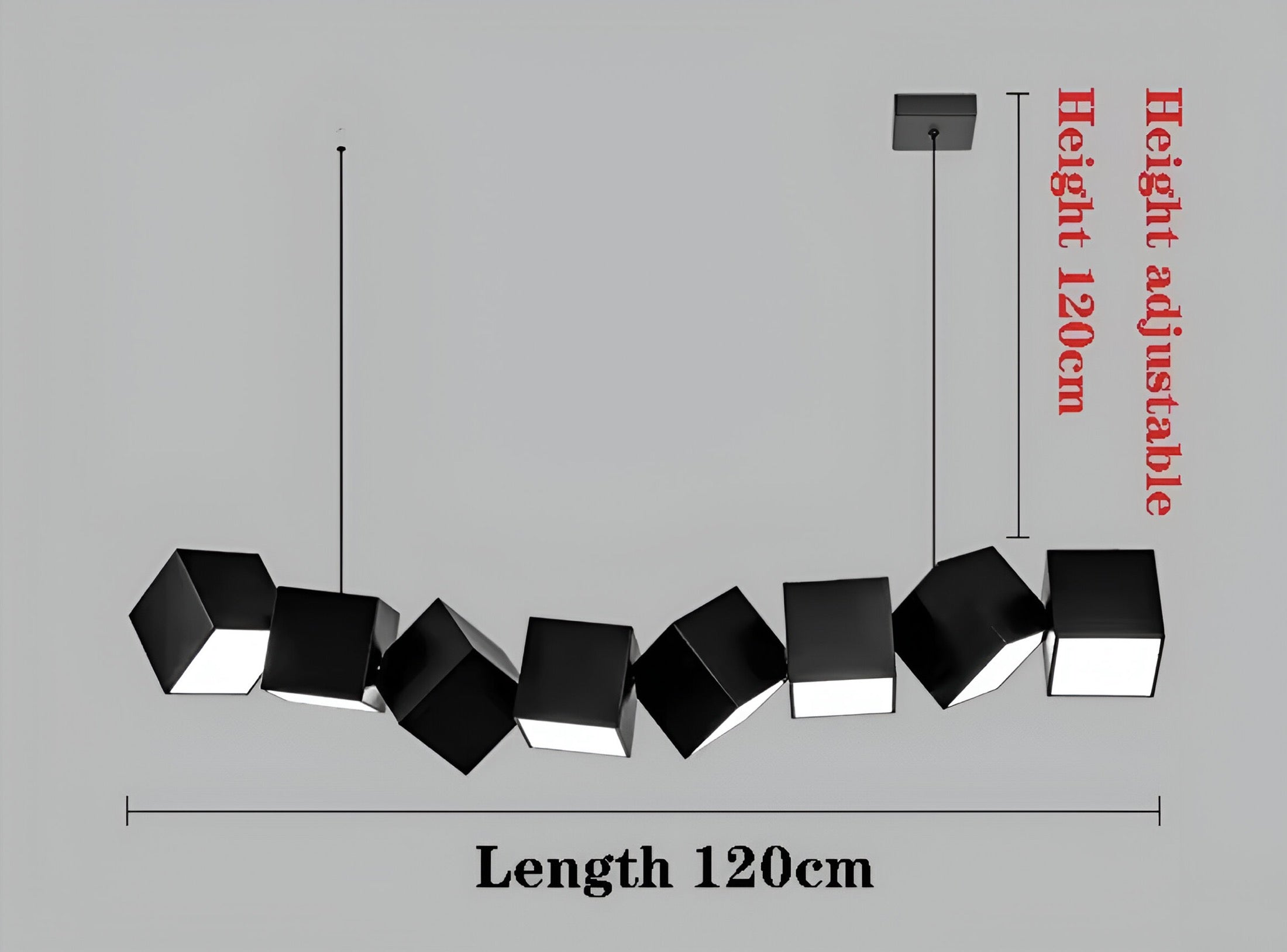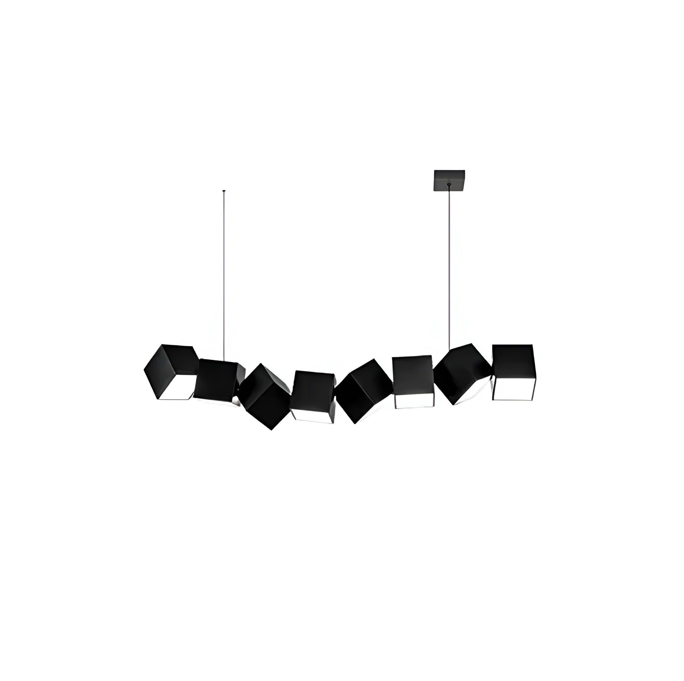 Dynamische Lichtkomposition: Jeder Würfel der 120cm langen Leuchte ist eine eigenständige Lichtquelle. Die scheinbar zufällige Neigung der Kuben erzeugt ein faszinierendes Spiel aus direktem und indirektem Licht, das Ihren Esstisch, Ihre Kücheninsel oder Ihren Konferenztisch perfekt und blendfrei ausleuchtet.