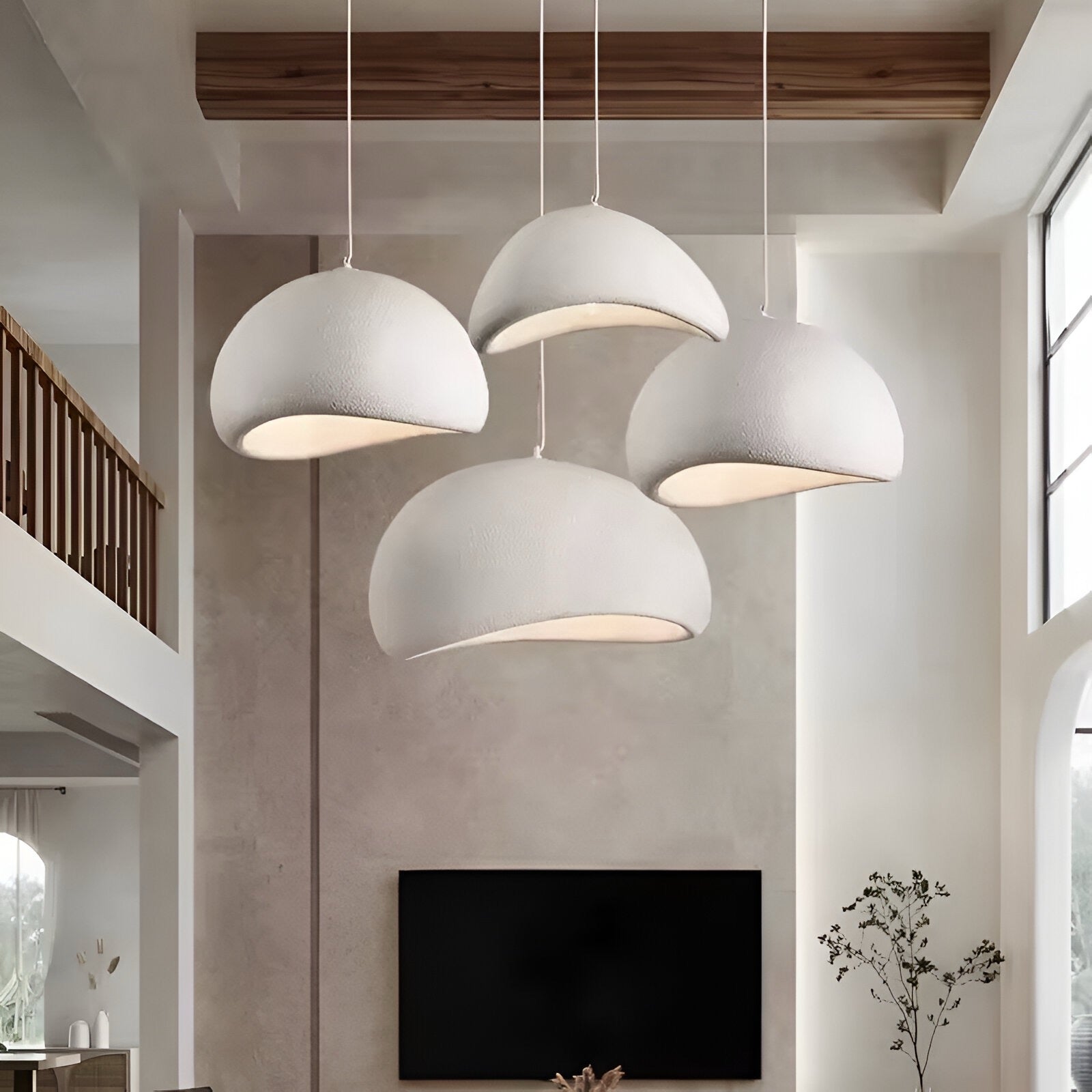Die Hängelampe Wabi-Sabi macht nicht nur im Wohnzimmer, sondern auch im Essbereich und Schlafzimmer einiges her.
