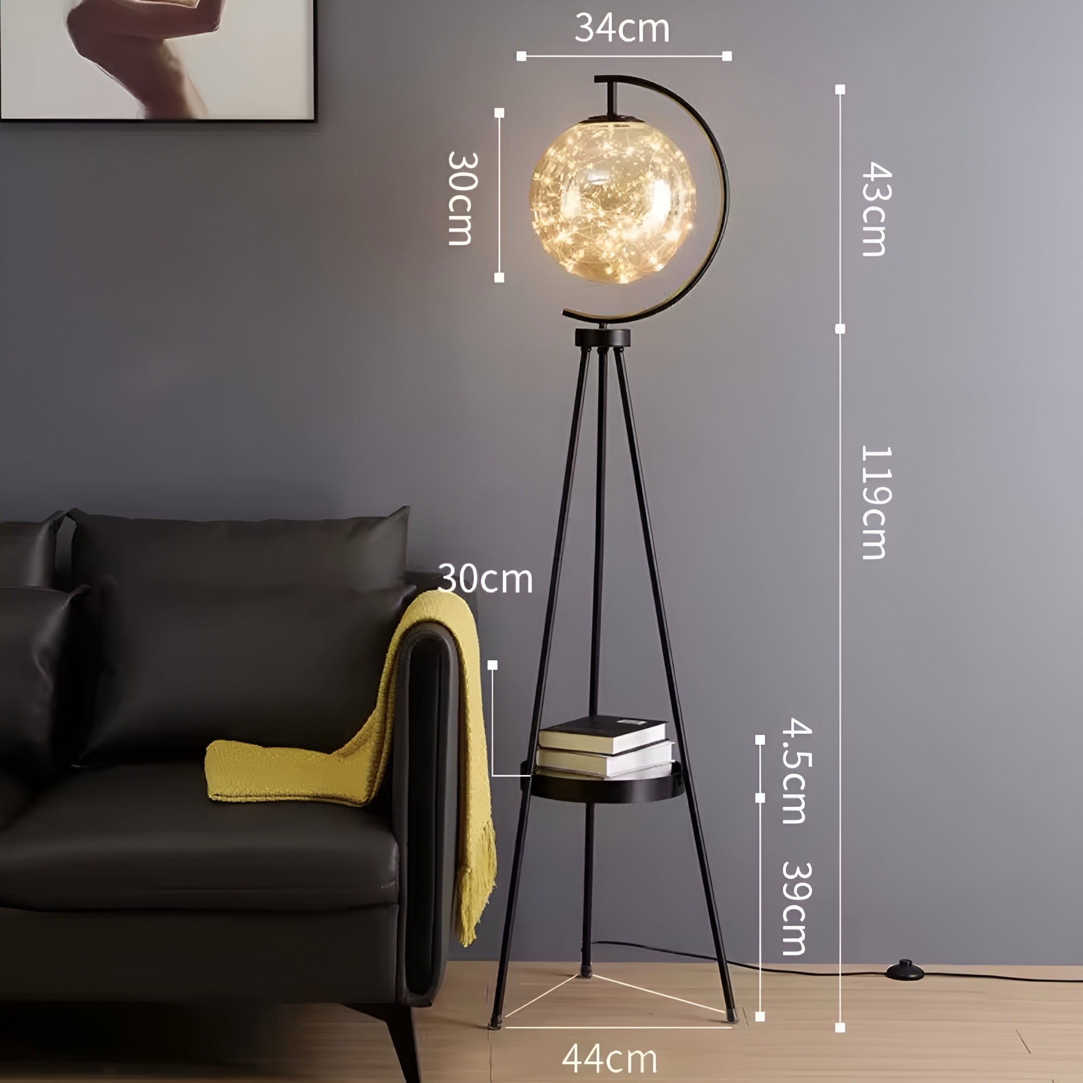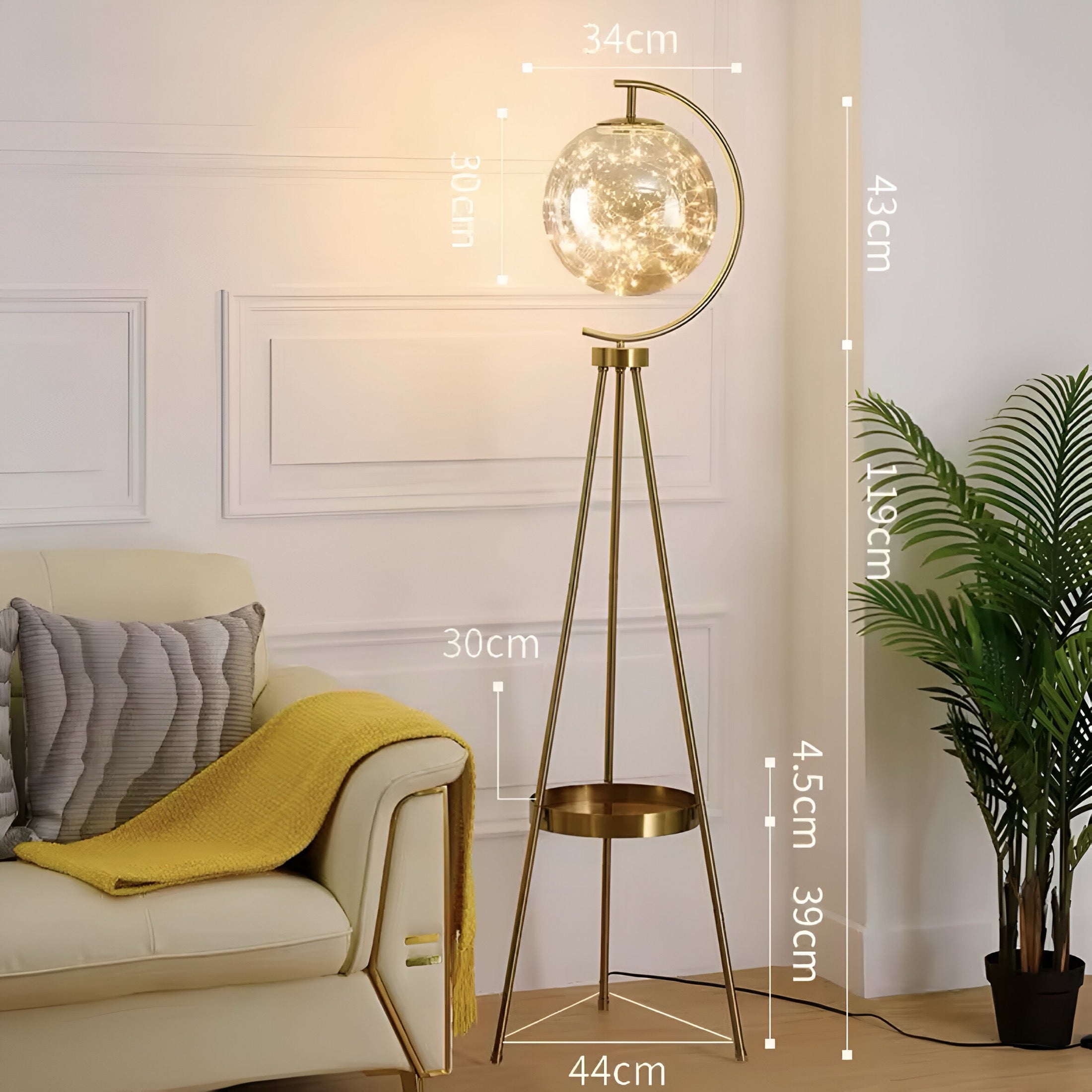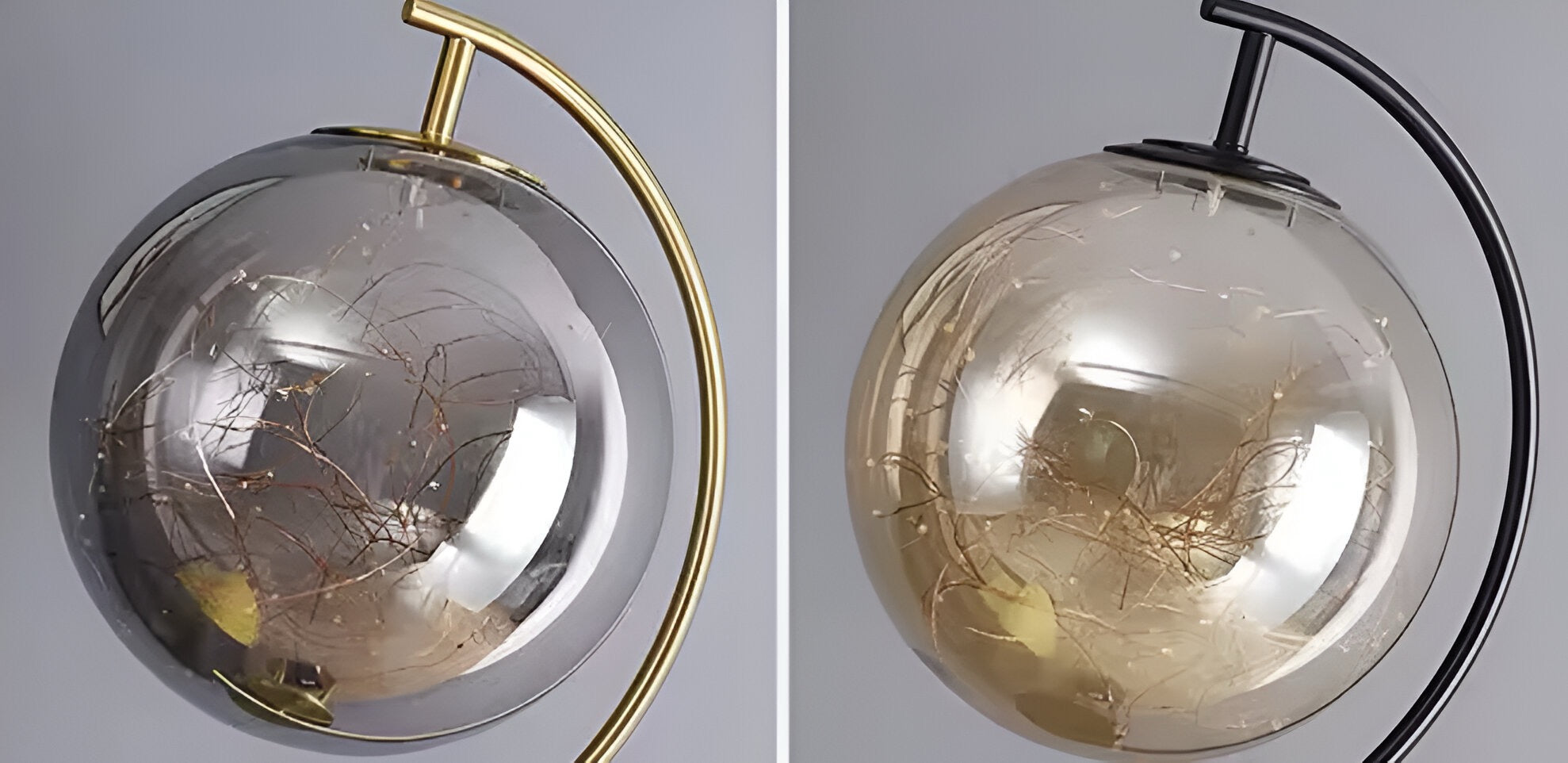 Erhältlich in warmem Amber oder elegantem Smokey Grey, schafft die Glaskugel, gefüllt mit glitzernden Lichtern, eine magische Atmosphäre.