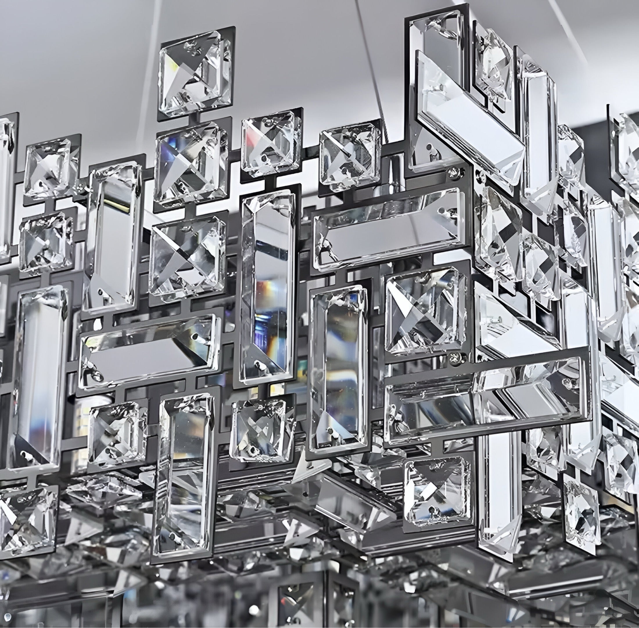 Die Pendelleuchte Cristallo Rattangolo ist in den edlen Farbvarianten Gold und Silber erhältlich, sodass sie sich harmonisch in verschiedene Einrichtungsstile einfügt und jedem Raum eine elegante Note verleiht.