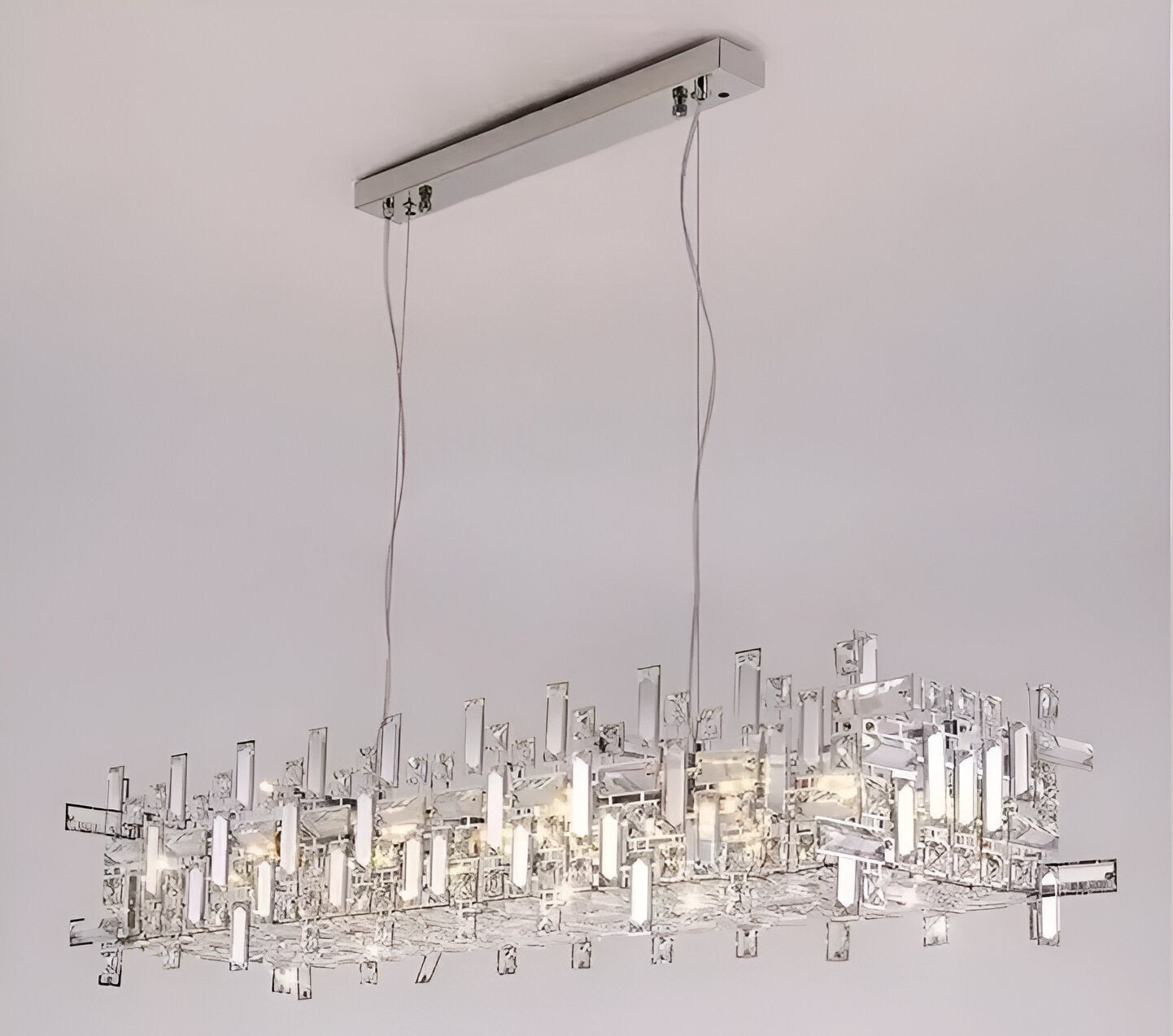 Die Pendelleuchte Cristallo Rattangolo vereint zeitlose Eleganz mit moderner Technik in einem außergewöhnlichen Design. Ihre rechteckige Form wird von zahlreichen K9 Kristall-Bouquets geschmückt, die das Licht auf eine faszinierende Weise reflektieren und dabei eine luxuriöse Atmosphäre schaffen. Ideal geeignet für den Küchenbereich oder über dem Esstisch, setzt diese Leuchte stilvolle Akzente und sorgt gleichzeitig für eine angenehme Beleuchtung.