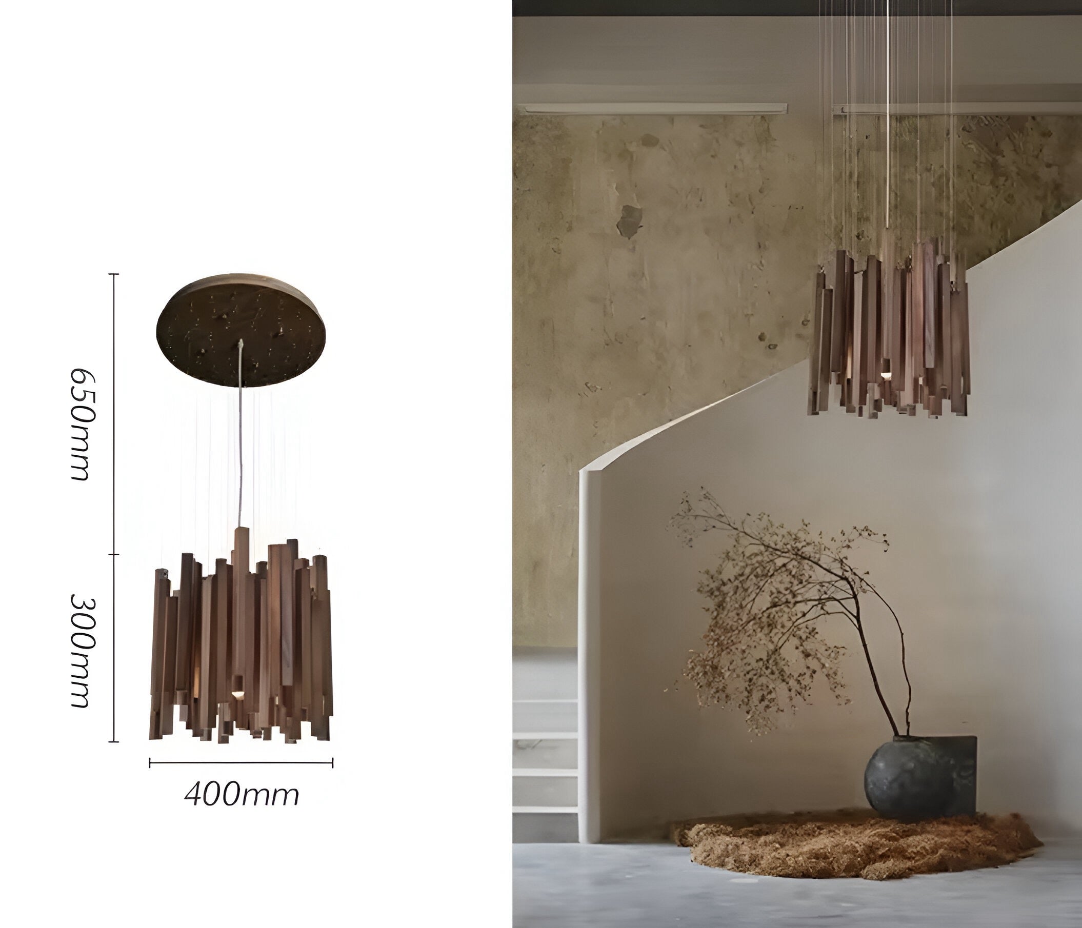 mit der Designer Pendelleuchte Modern Yang. Diese Pendelleuchte vereint traditionelle Handwerkskunst mit moderner Ästhetik und bringt natürliche Eleganz in jeden Raum.