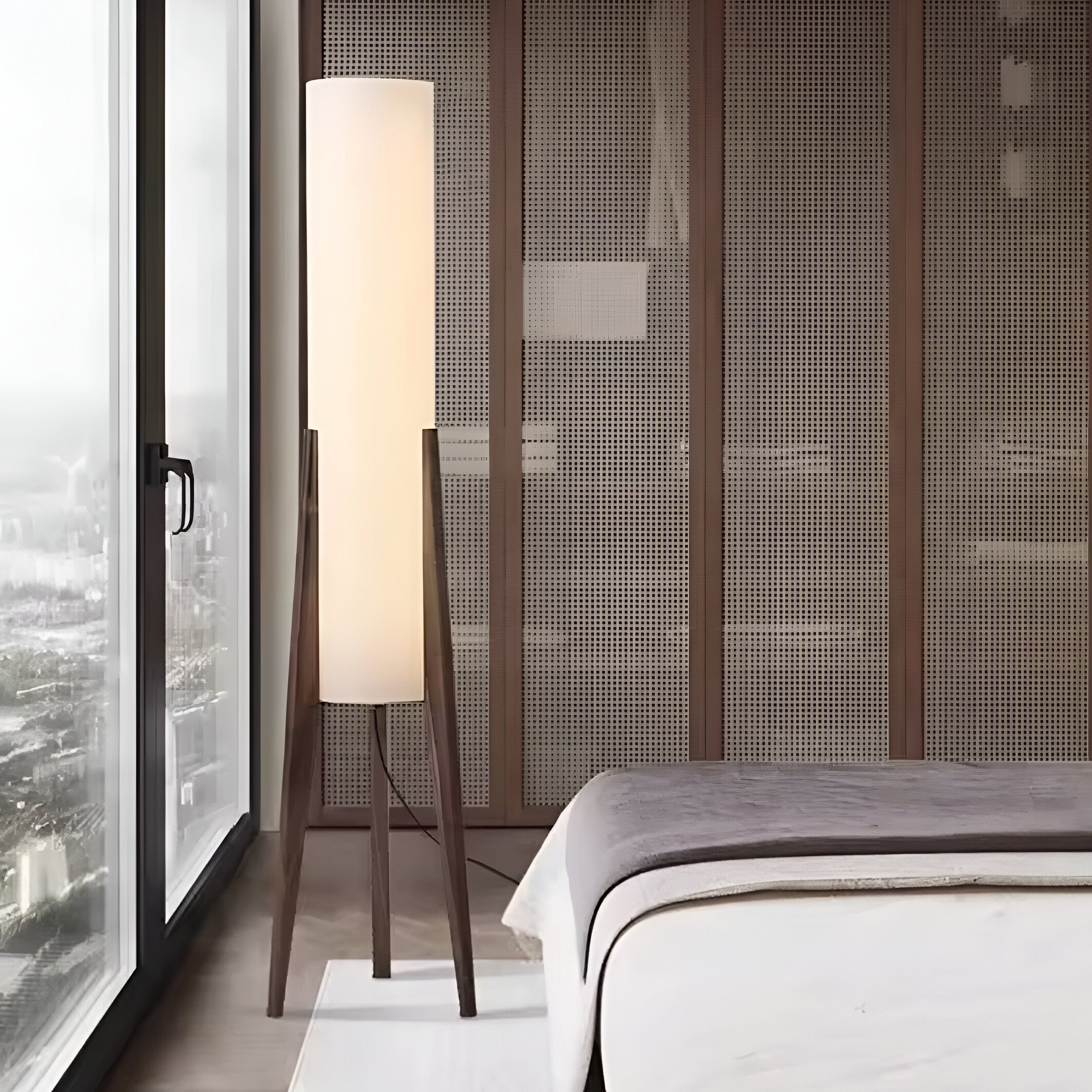 Harmonie aus Holz und Licht: Das Herzstück der Penera ist ihr elegantes Gestell aus massivem Holz, das in zwei Ausführungen erhältlich ist: Wählen Sie zwischen dem warmen, freundlichen Ton von hellem Holz für eine luftige, natürliche Atmosphäre oder dem edlen, dunklen Holz für einen Hauch von Mid-Century-Eleganz. Der hohe, zylindrische Stoffschirm filtert das Licht sanft und sorgt für eine blendfreie, gemütliche Beleuchtung, die jeden Raum in ein einladendes Ambiente taucht.