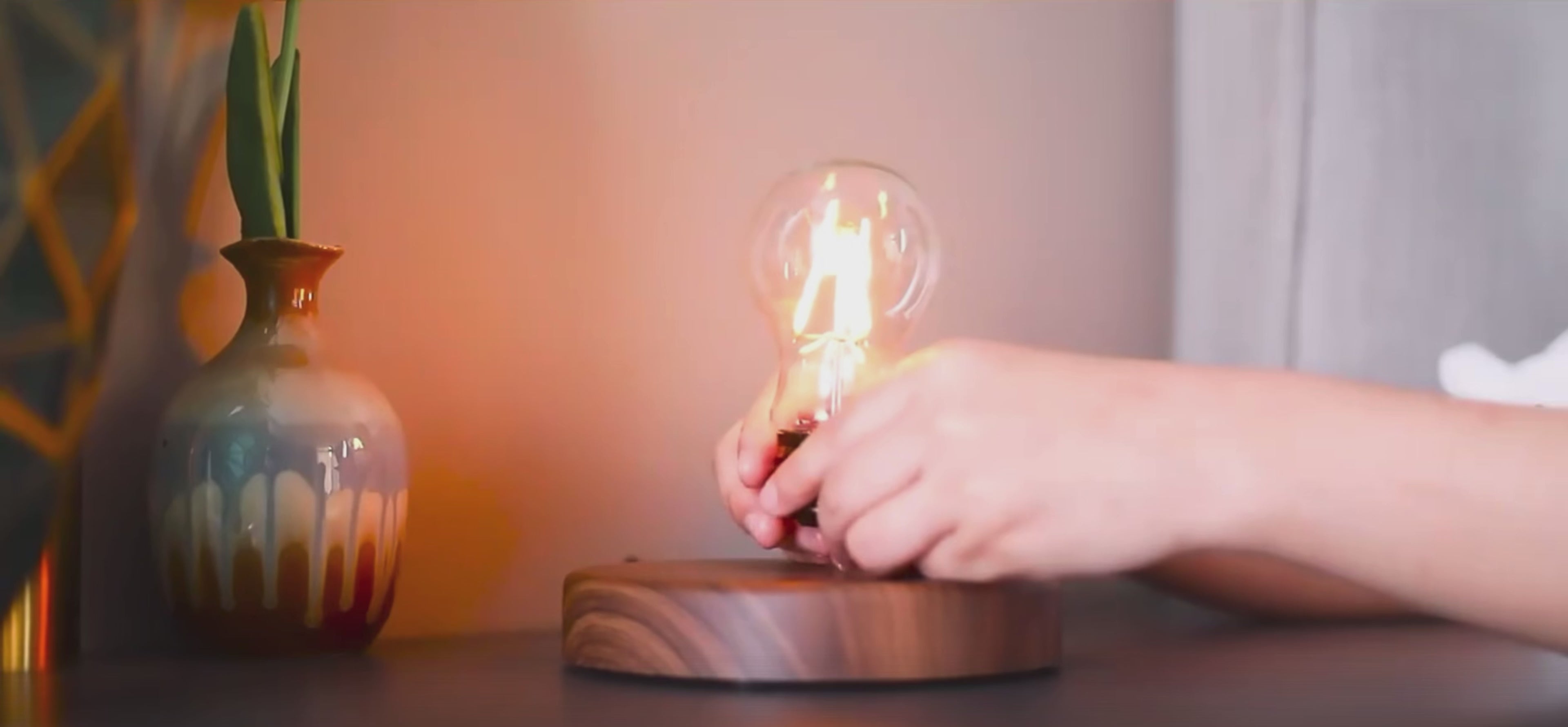 Stösst man die Glühbirne leicht an, dreht diese sich aufgrund der fehlenden Reibung endlos 360° um Ihre eigene Achse!