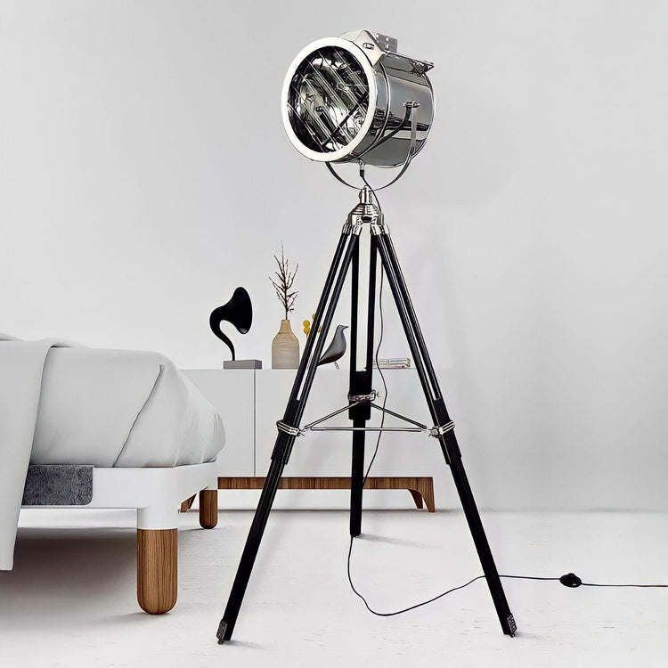 The trendy Movie Star floor lamp with a retro look is a real eye-catcher. The tripod gives the lamp a robust appearance in industrial design. This adds a touch of liveliness to the room and provides variety.