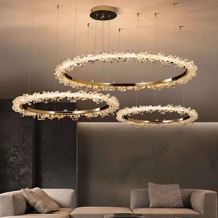 Die einzigartige Hängelampe Halo Crystal verleiht jedem Raum in eine warme und gemütliche Raumatmosphäre. Das Zimmer wird durch die leistungsfähigen Ringe der Hängelampe Halo Crystal optimal beleuchtet und stilvoll in Szene gesetzt. Diese Hängelampe besticht nicht nur durch ihr elegantes und zeitloses Design, sondern auch durch ihre hochwertige Verarbeitung und Materialien. Der Ringkörper besteht aus Aluminium verziert mit hochwertigen Kristallelementen.