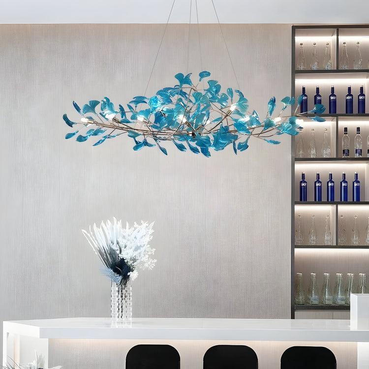 Dans la pièce, la suspension Modern Ginkgo dégage un sentiment de communion avec la nature.