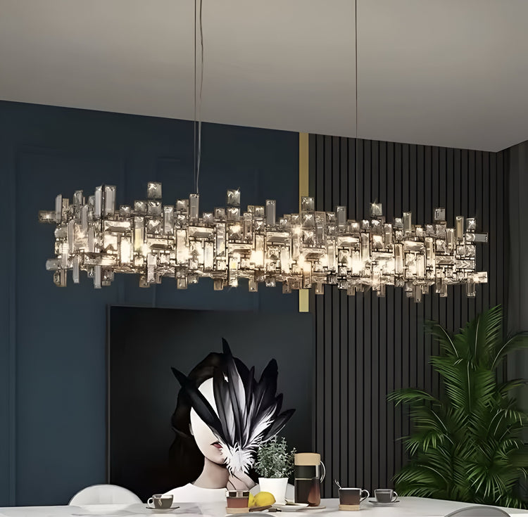 La lampada a sospensione Cristallo Rattangolo unisce l'eleganza senza tempo alla tecnologia moderna in un design straordinario. La sua forma rettangolare è ornata da numerosi bouquet di cristallo K9 che riflettono la luce in modo affascinante, creando un'atmosfera lussuosa. Ideale per la zona cucina o sopra il tavolo da pranzo, questa lampada crea accenti di stile e fornisce un'illuminazione piacevole.