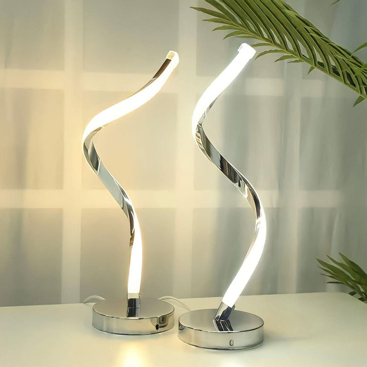 Questa esclusiva lampada da tavolo dall'aspetto a spirale è caratterizzata da un'accattivante forma a spirale. Perfetta per il comodino della camera da letto o come semplice oggetto decorativo in salotto.