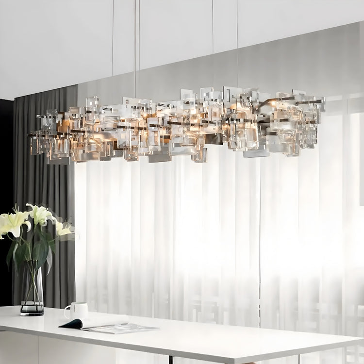 La forma rettangolare lussuosamente lavorata e la finitura lucida della lampada da tavolo Cristallo di Gelo ne fanno un elemento di spicco in ogni ambiente.