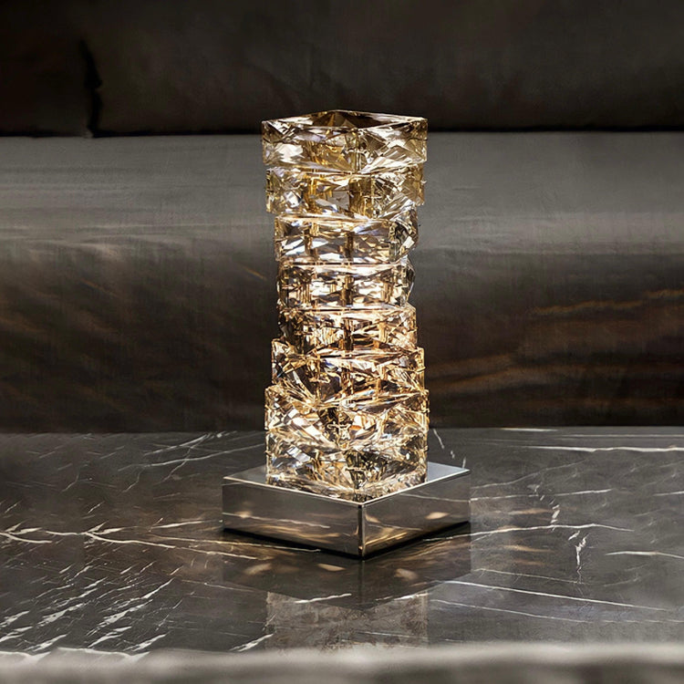 La lampada da tavolo Crystal Samoa colpisce per il suo design lussuoso in cristallo K9 e acciaio inossidabile.