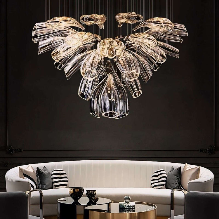 I singoli elementi sono realizzati in cristalli di vetro massiccio, rendendo il lampadario un'opera d'arte di alta qualità.