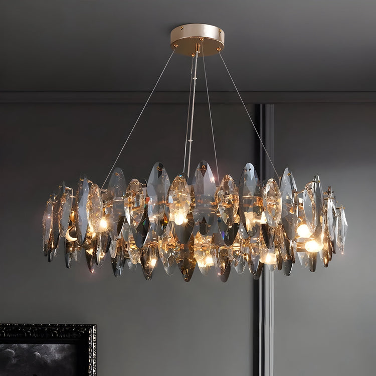 La caratteristica principale del lampadario Marquise Deluxe sono gli elementi in cristallo K9 sfaccettato con taglio a marquise. Da qui il nome del lampadario.